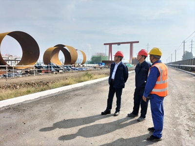 曹堅(jiān)先后來(lái)到碳鑫乙醇項(xiàng)目建設(shè)現(xiàn)場(chǎng)及陜西化建設(shè)備制造公司的超限塔器現(xiàn)場(chǎng)設(shè)備制造廠(chǎng)進(jìn)行了視察,重點(diǎn)檢查了工程進(jìn)度、安全生產(chǎn)、技術(shù)管控、環(huán)境保護(hù)、疫情防控等情況,對(duì)本項(xiàng)目目前的"穩(wěn)增長(zhǎng)、抗疫情、保安全"的工作表示肯定。