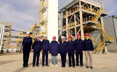 自項目組接到業(yè)主計劃投料試車通知后,迅速展開部署,提前安排各相關方到達現場,打出提前量,以防出現不確定因素影響正式投料試車。為保證安全順利投產,項目組各位負責人與業(yè)主、各參建方并肩作戰(zhàn),通力合作,對各個系統(tǒng)、所有設備、每處法蘭及可能的泄漏點逐一進行排查。面對各種突發(fā)問題,項目組與公司設計人員連續(xù)加班協助業(yè)主及時處理,最終順利打通了投料試車全部流程。