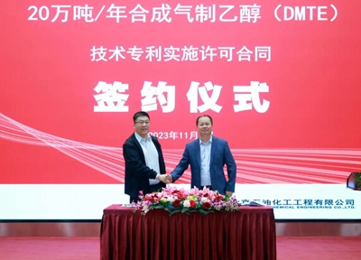 隨后,荊門源晗公司總經(jīng)理周虎,延長(zhǎng)中科(大連)能源科技股份有限公司總經(jīng)理王輝代表雙方簽署了20萬(wàn)噸/年合成氣制乙醇(DMTE)技術(shù)專利實(shí)施許可合同并分別致辭。簽約儀式結(jié)束后,召開(kāi)了項(xiàng)目設(shè)計(jì)開(kāi)工會(huì),與會(huì)人員對(duì)設(shè)計(jì)方案進(jìn)行了深入交流。