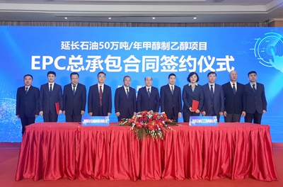 許緘濤在致辭中表示,凱越煤化50萬噸/年甲醇制乙醇項目是繼興化、榆神乙醇項目之后,北油工程與延長集團在乙醇領域的又一次友好合作。公司將嚴格按照合同約定,本著精益求精的工匠精神,精心選派設計、采購和施工管理的精兵強將,認真總結已建成乙醇項目經(jīng)驗,持續(xù)優(yōu)化工藝流程和設備選型,科學組織好項目建設各階段工作,確保將凱越乙醇項目建設成為工藝流程更優(yōu)、能耗水平更低、產(chǎn)品質量更好的綠色工程、精品工程、效益工程。據(jù)悉,該項目是延長集團積極推進"穩(wěn)油增化"戰(zhàn)略,進一步延伸產(chǎn)業(yè)鏈、實現(xiàn)產(chǎn)品轉型升級的重點建設項目,也是北油工程鞏固拓展延長石油市場、全力打造乙醇明星產(chǎn)品、全面提升企業(yè)信譽口碑的重要依托工程。