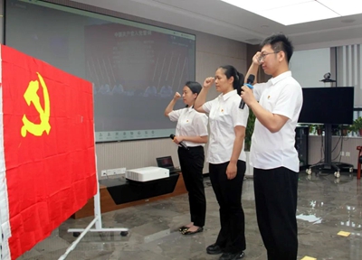 大會(huì)在莊嚴(yán)的國歌聲中拉開帷幕,全體參會(huì)干部、職工著裝整齊、昂首肅立。面對(duì)鮮紅的黨旗,預(yù)備黨員在公司黨委副書記、總經(jīng)理田偉同志的領(lǐng)誓下,莊嚴(yán)宣誓,擲地有聲地表達(dá)了對(duì)黨的無限忠誠和崇高敬意。