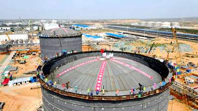 7月14日,由北京石油化工工程有限公司EPC總承包的延長(zhǎng)石油靖邊天然氣儲(chǔ)氣調(diào)峰及配套LNG項(xiàng)目?jī)膳_(tái)5萬立方米大型液化天然氣儲(chǔ)罐穹頂氣頂升作業(yè)圓滿完成,標(biāo)志著外罐主體結(jié)構(gòu)建設(shè)完畢,全面轉(zhuǎn)入內(nèi)罐安裝階段,為項(xiàng)目后續(xù)建成中交奠定了堅(jiān)實(shí)基礎(chǔ)。