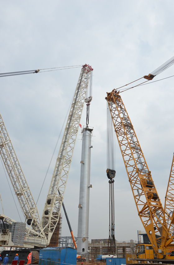 2013年9月3日上午9點18分,712項目加氫裂化固定床反應器吊裝工作正式開始,11點18分反應器吊裝完成,用時兩個小時,獲得一次性成功。這次吊裝成功,不僅彰顯著作為項目最核心裝置之一的固定床順利安裝到位,更重要的是我公司駐外項目積攢了豐富的經(jīng)驗,為今后大型設備安裝工作夯實了堅實的基礎。
