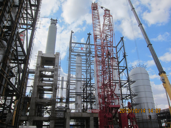 經(jīng)過近半個月時間的吊裝機(jī)械組裝及準(zhǔn)備工作,煤-油共煉試驗示范項目(也稱“100項目”)再次掀起大型設(shè)備吊裝的高潮,2013年10月14日,100項目核心設(shè)備懸浮床反應(yīng)器(12-R-0102)順利完成吊裝作業(yè),至此3臺懸浮床反應(yīng)器全部完成吊裝,吊裝過程一氣呵成。
