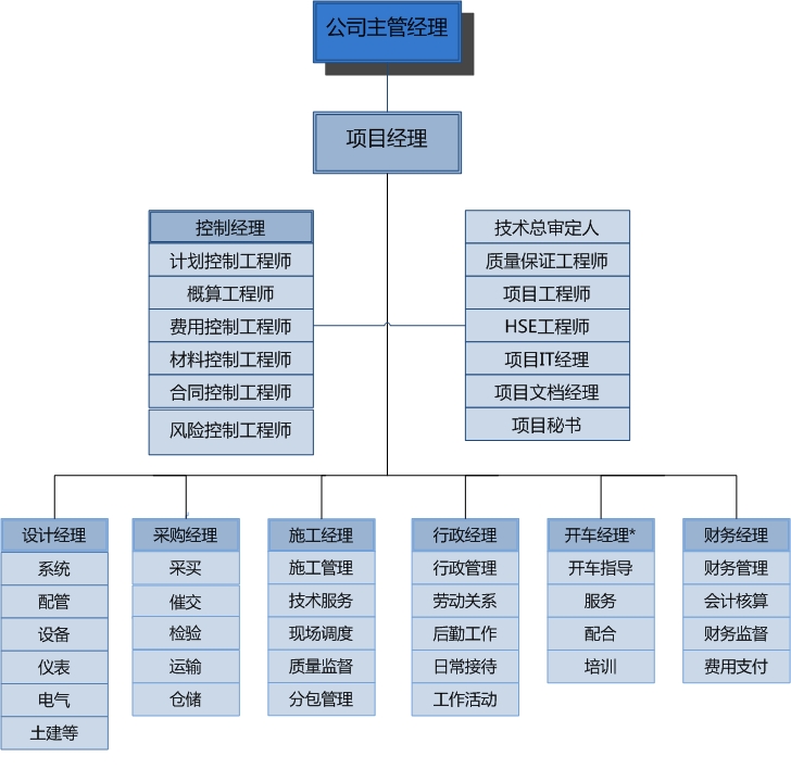 我公司擁有完善的項(xiàng)目管理標(biāo)準(zhǔn)體系、先進(jìn)的項(xiàng)目管理軟件和豐富經(jīng)驗(yàn)的項(xiàng)目管理人員,在項(xiàng)目管理理念、系統(tǒng)、模式和工具上完成了與國際接軌。在項(xiàng)目執(zhí)行過程中,建立了在項(xiàng)目經(jīng)理領(lǐng)導(dǎo)下,從項(xiàng)目設(shè)計(jì)、采購到施工管理的 EPC 、 EPCM 和 PMC 等全方位用戶服務(wù)體系,為國內(nèi)外用戶提供優(yōu)質(zhì)的工程服務(wù)。